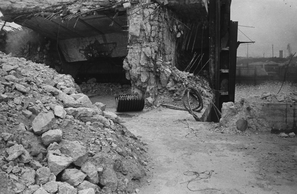 De sloop van het door de Duitsers in het zuidelijke uiteinde van het Zeewezendok gebouwde SBB (Schnellbootbunker).