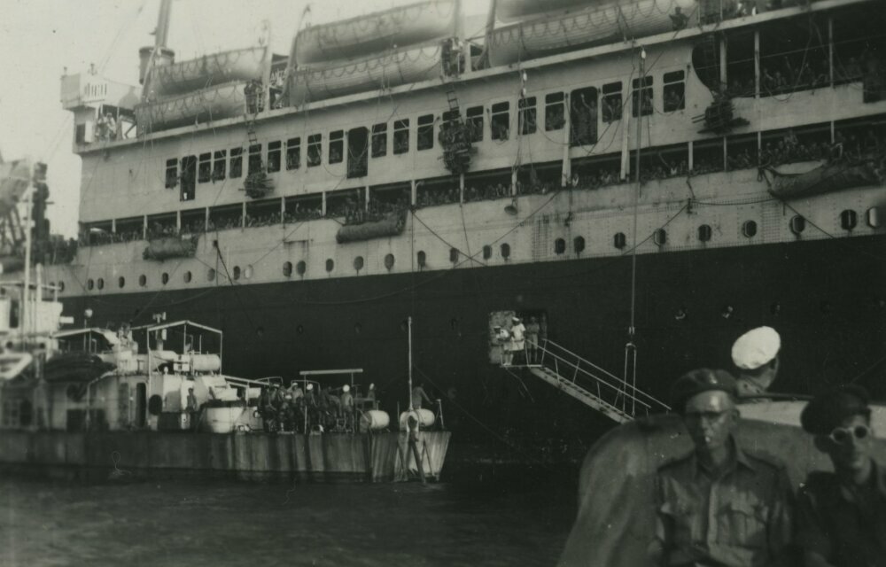 Reis van het 8e (4e) Bataljon Regiment Stoottroepen met het troepenschip 'Alcantara' naar Nederlands-Indië.