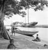Inheems zeilschip voor vrachtvervoer in haven, Indonesië (1947)