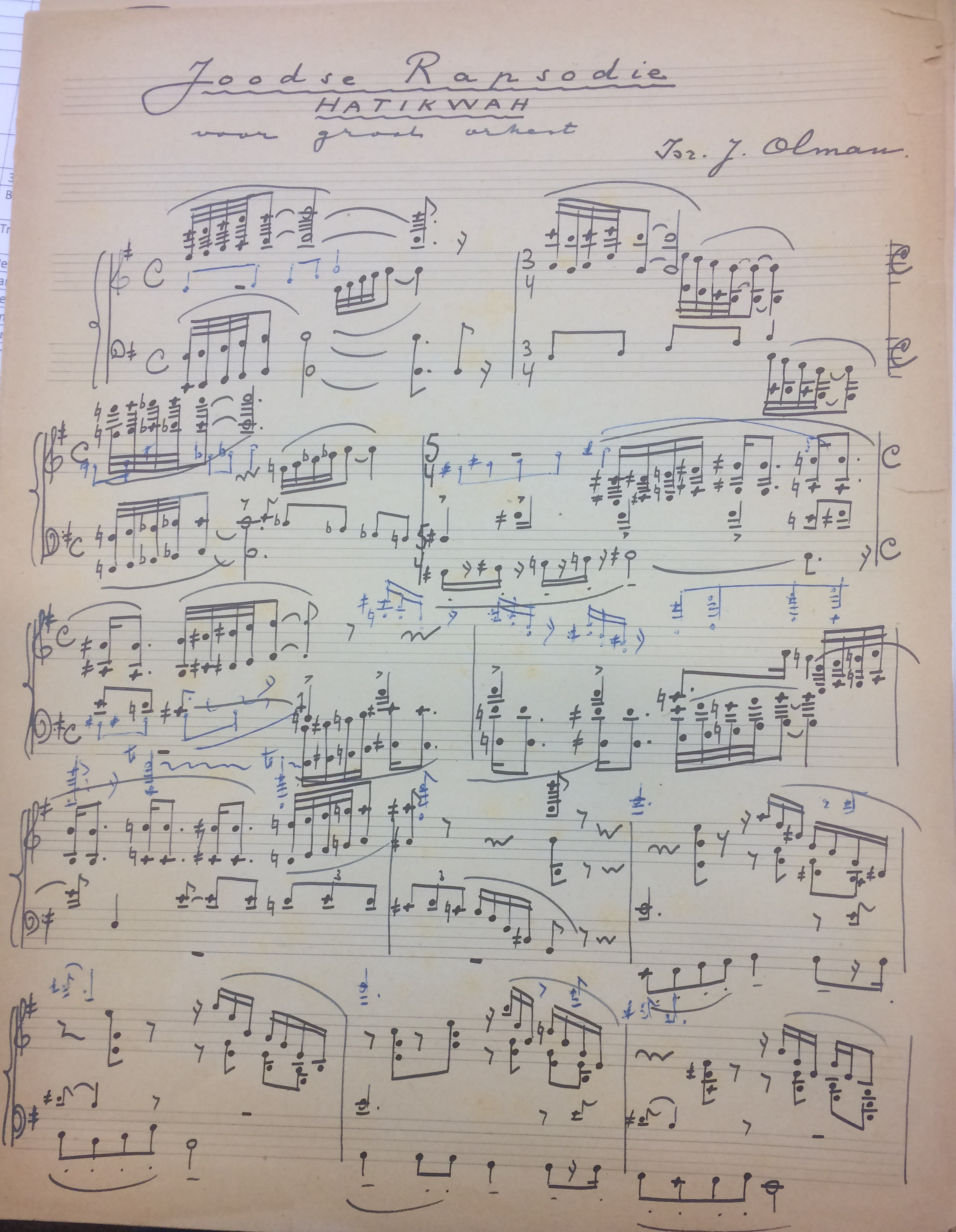 1. Tikanto Schabos (voice and piano) 2. Kedoescha Moesaf (voice and piano) 3. Mizmour Schier Lejoum Kaschabas (for cantor and male choir TTBB) 4. Dewenoegow Joumar (for cantor and male choir TTBB) 5. Kedoesjo Moesaf (voice and piano) 6. Jikdal (cantor and male choir TTBB) 7. Mangariw leil Schabbos (solo and choir) 8. Asjrei (tenor solo, two boys and male choir) 9. Legoo Dodi - Kidoesj Leschabos (cantor and male choir TTBB) 10. Mo Oschiw - Ledowied Mizmour (TTBB) 11. Hodw - Ono (solo and TTBB) 12. Oudegoo (TTBB) 13. Ledowid Boroech (TTBB) 14. Tekang (tenor and TTBB) Up until World War II, Israel J. Olman had been a celebrated choral conductor and composer. He wrote synagogal music and also music for socialist choirs, to be performed at major singing competitions. His fame, in addition to the fact that he was married to a Catholic woman, offered him some protection during the war. In the post-war years his reputation as a composer diminished rapidly, creating financial difficulties. The world had changed and his musical idiom had become outdated. by Pauline Micheels