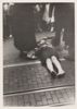 Een gewonde vrouw ligt op de tramrails, politieagenten bieden hulp. Afmetingen: voorstelling inclusief kader 182 x 129 mm