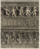 Detail van de rand van de heeluursklok in de Westerkerk, met boven de tekst en geheel onder een palmettenfries, en direct onder de tekst een fries met bladmotieven en vogels