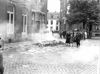 Maastricht. Vrijthof 36. Gelegen aan de westzijde op de hoek van het Keizer Karelplein. Plundering van het voormalig N.S.B.- hoofdkwartier. Raam aan het Keizer Karelplein.
