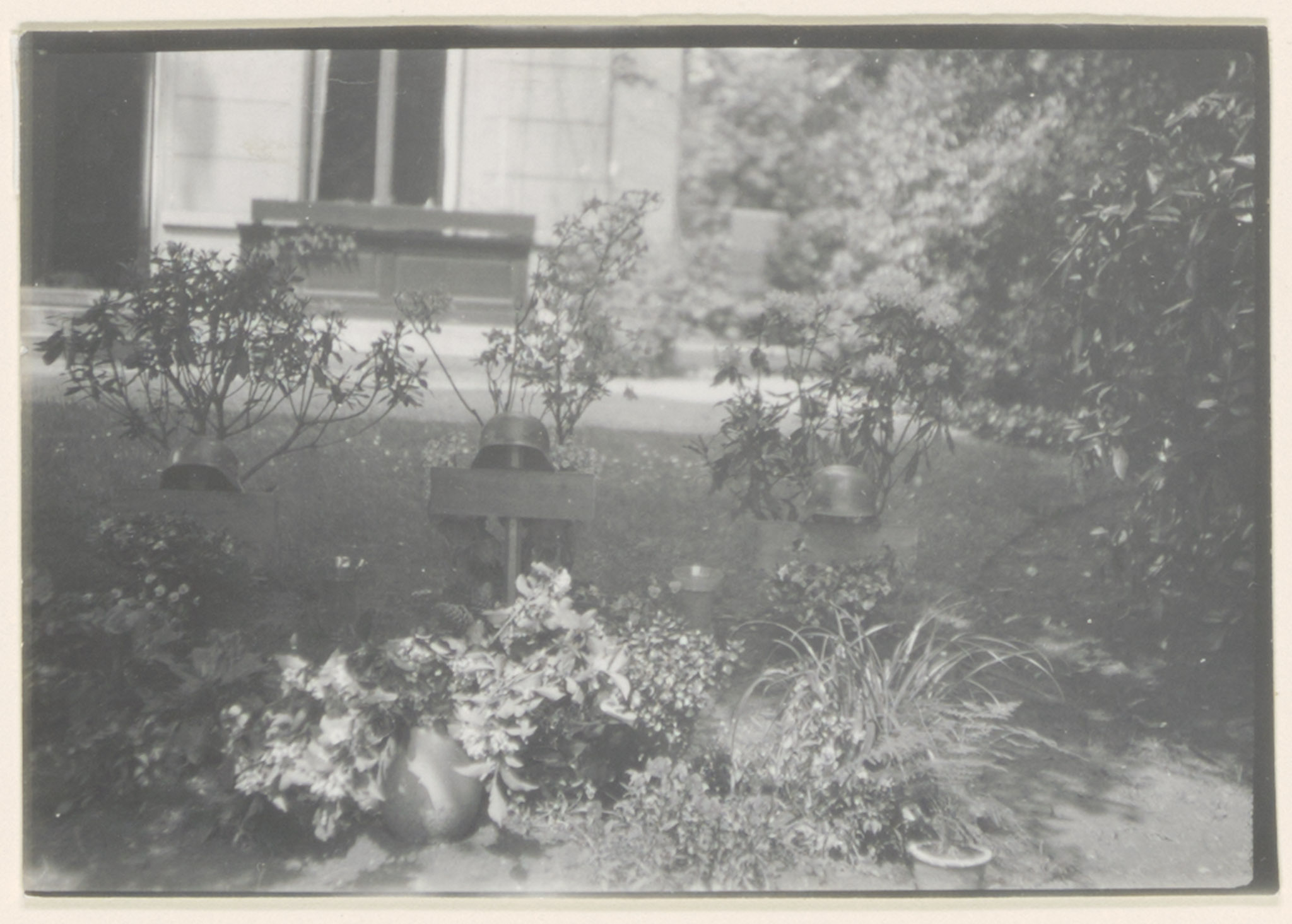 Graf van drie Duitse militairen in de tuin van arts Delhez aan de Van Strijsingel.