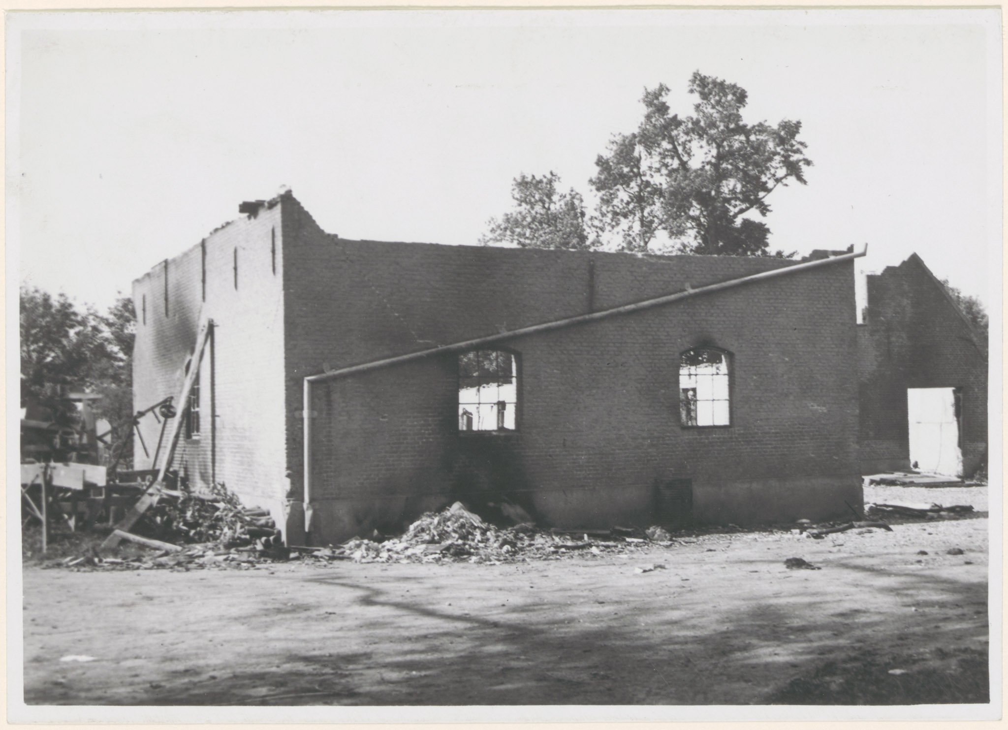 Schade door beschietingen in de meidagen van 1940 aan hoeve Gravenstein aan de Rijksstraatweg.