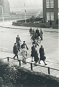 Het afvoeren door de politie of P.O.D. van zogenoemde moffenhoeren op de Krispijnseweg bij de Amalia van Solmsstraat.