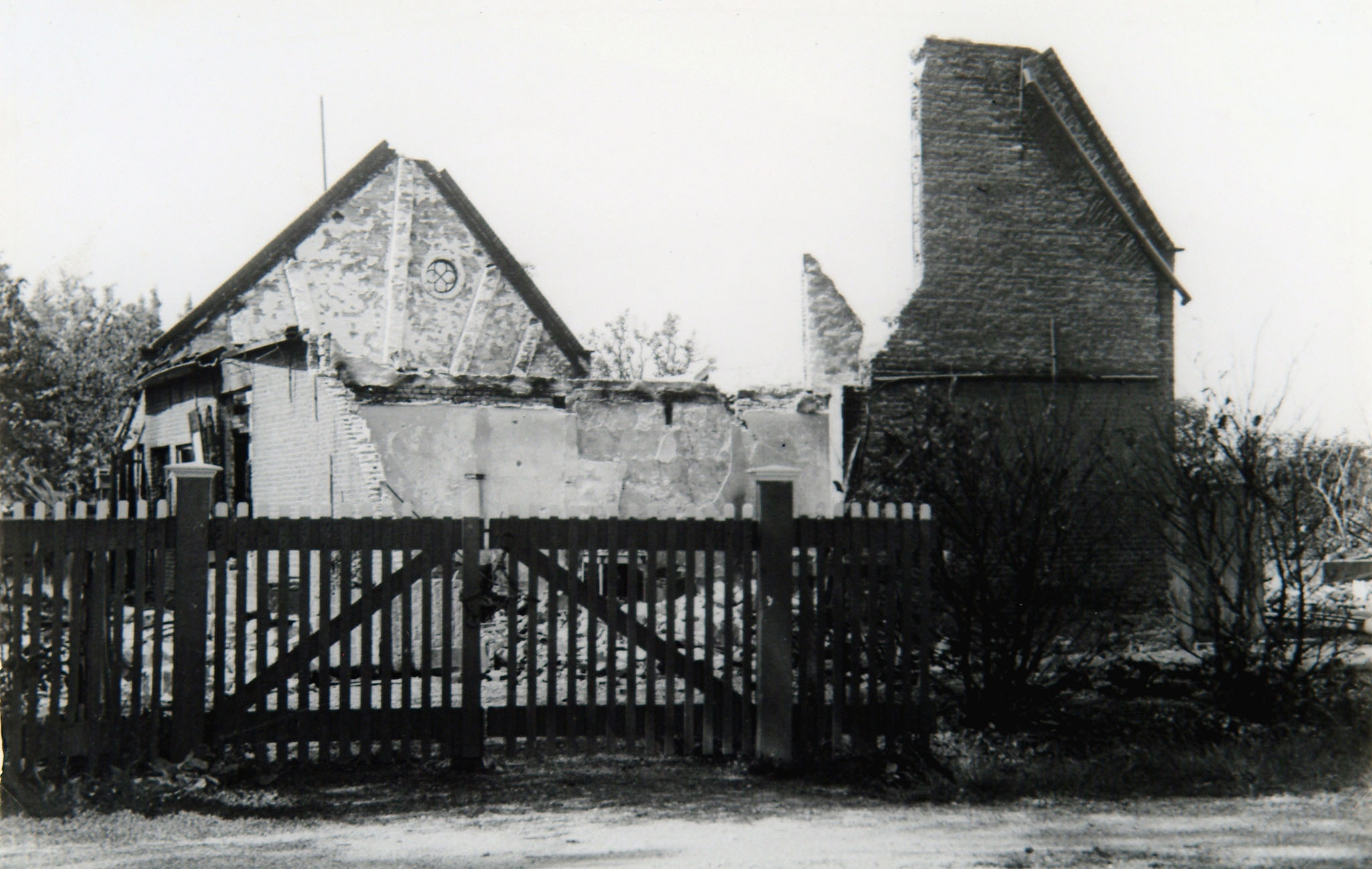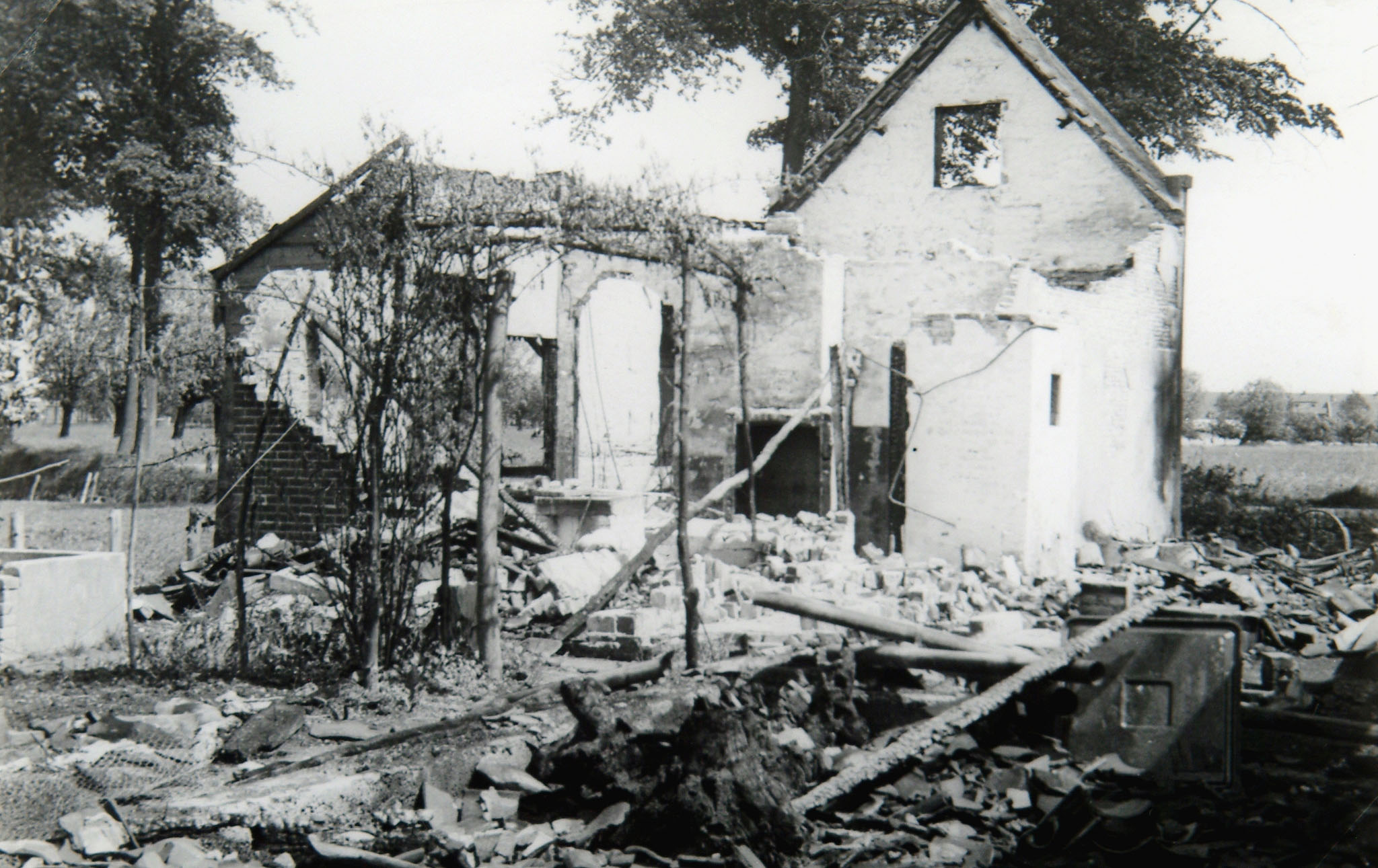In mei 1940 beschoten panden aan Reeweg Zuid, kijkend in de richting van de Dordtsche Kil.