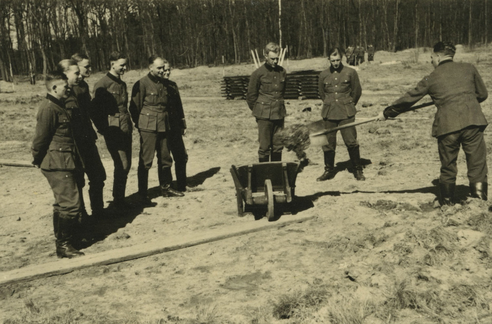 De Duitsche Rijksarbeitsdienst aan het werk op een vliegveld.