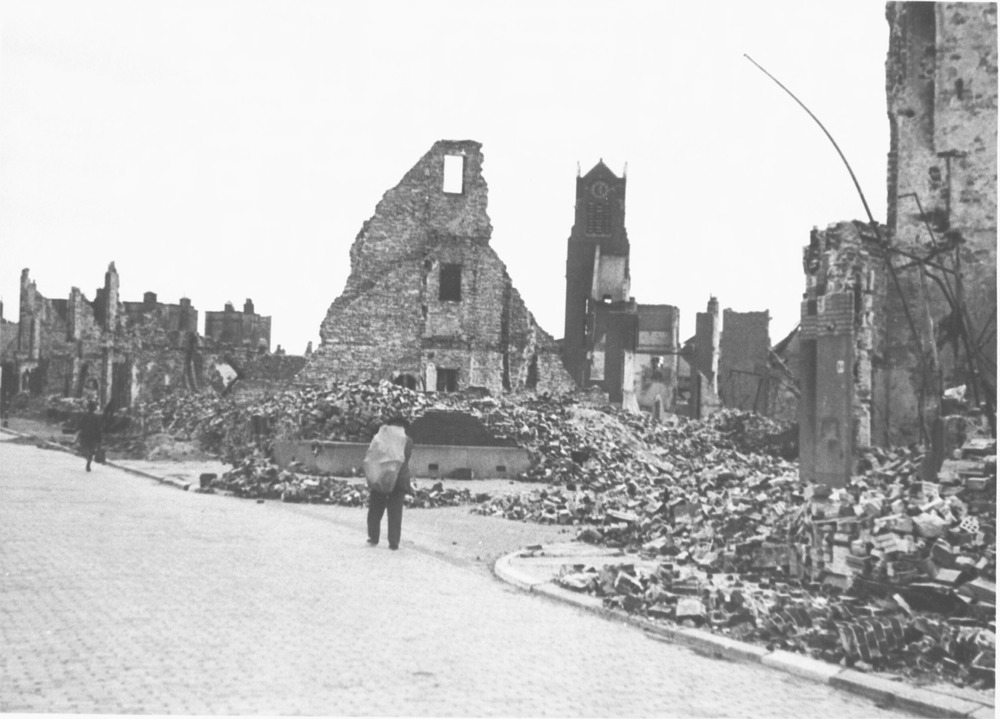 Den Haag: Bombardement. Hoek Anna van Buerenstraat en Charl. de Bourbonstraat.