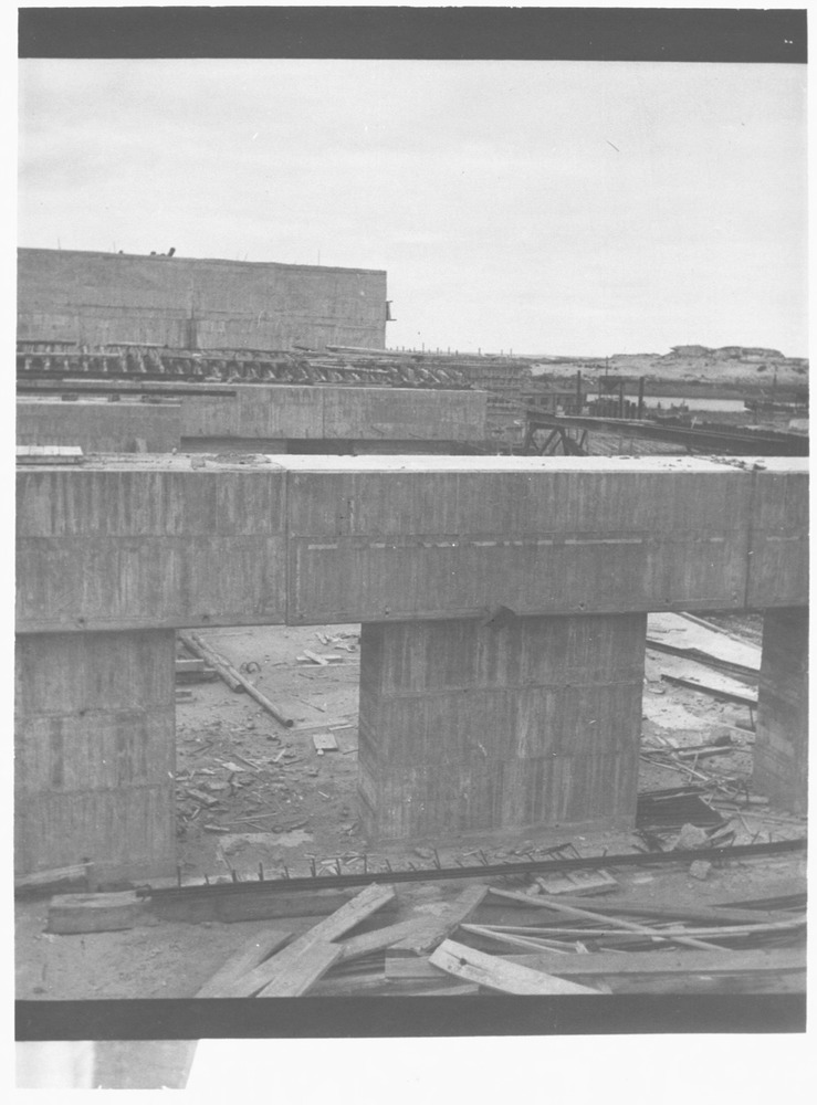 Vernielingen, afbraak, versterkingen in IJmuiden. Gedeelte bovenverd. in aanbouw zijnde Y-bunker Haringhaven.