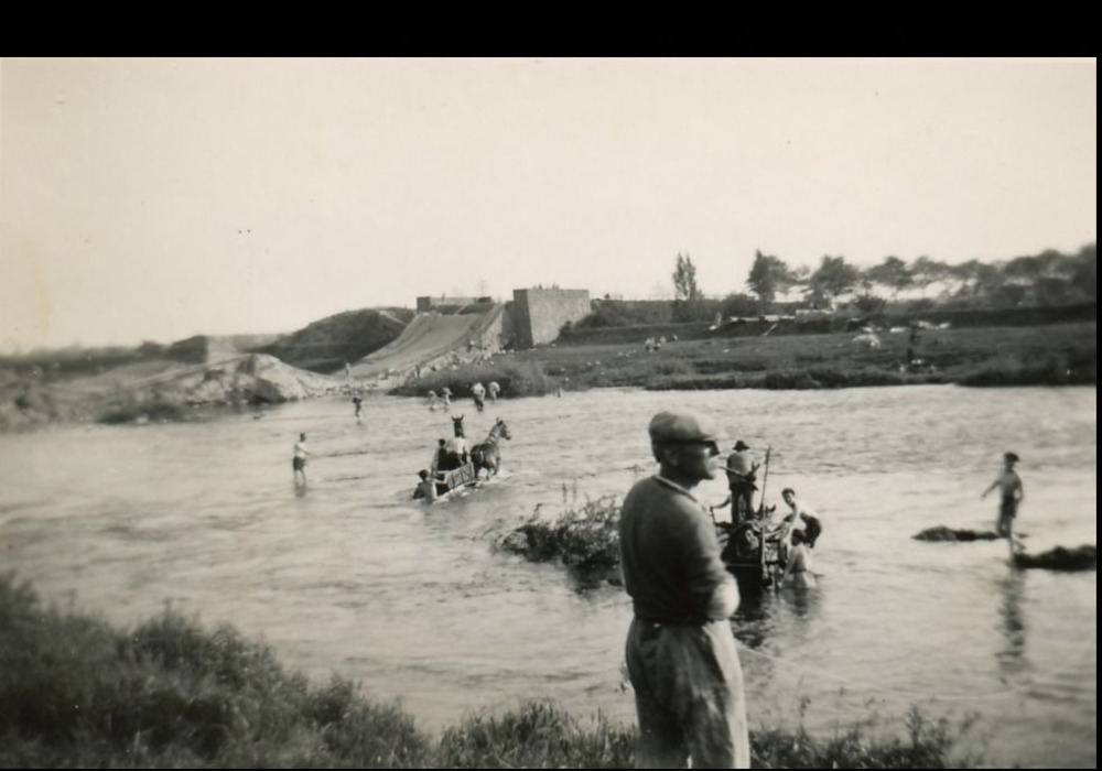 Twee fotoalbums, veel losse foto’s, briefkaarten en negatieven van J.A. Vogel, 1921, over zijn te werk stelling in Dresden. Zijn beroep was plaatwerker. Hij komt op 28 april 1943 aan in Dresden. Bijgevoegd is zijn paspoort. Daaruit blijkt dat hij verlof kreeg van eind januari 1944 tot 8 februari. Het eerste album bevat foto’s uit 1943 en 1944 van Vogel en andere Nederlanders? in Dresden Zij werkten in een fabriek van Willy Schotz in de Marienhofstrasse 75/ 77.. Tussen door kleine, gekochte foto’s van Dresden en wat briefkaarten. Een bladzij bevat drie foto’s gemaakt tijdens zijn verlof in Nederland. De laatste met twee koffers, klaar voor zijn terugreis baar Dresden. . Tweede album begint in februari 1944. Voorin staat: Gekregen voor onze verjaardag van Piet Stijnen, 27-2-1944, Dresden. Het is vergelijkbaar met het eerste album, hierin ook foto’s die al in het eerste album zitten. Maar ook foto’s van uitstapjes naar de sneeuw en bergen in de buurt. Albums zijn interessant omdat alle foto’s het Dresden vertonen van voor het bombardement op 13/ 14 februari 1945. Of Vogel dit heeft meegemaakt is onduidelijk. Een stempel van 21 maart 1945 toont dat hij tot maart 1947 in Dresden mocht blijven!!