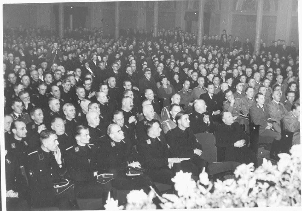 Op 13 december 1942 viert de NSB in het Concertgebouw in Amsterdam het 11-jarig bestaan. Absoluut hoogtepunt van de bijeenkomst is de mededeling van Rijkscommissaris Seyss-Inquart dat Mussert door Hitler erkend wordt als 'Leider van het Nederlandsche volk'. Het originele bijschrift luidt: 'Die NSB feierte den Beginn des 12. Jahres ihres Kampfes in Amsterdam. V.l.n.r. Hauptdienstleiter, Generalkommissar Schmidt, General d. Inf. (als Vertreter des Wehrmachtsbefehlhabers i.d. Niederl.) Reinhardt, als Vertreter des Parteikanzlei Pg. Ritterbusch, SS-Gruppenführer Rauter.'