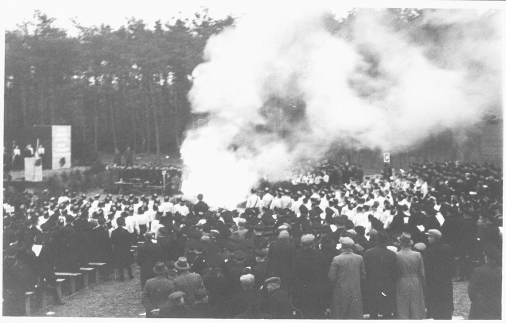 'Oefenmarsch Haagsche stormers vierdaagsche.' De jongerenorganisatie van de NSB, de Nationale Jeugdstorm (NJS), werd op 1 mei 1934 opgericht. Het lidmaatschap was op basis van vrijwilligheid. 'Arische' jongens en meisjes tussen de 10 en 18 jaar konden toetreden. Hoewel de Jeugdstorm de schijn probeerde op te houden een niet-politieke groepering te zijn, waren de ideeën grotendeels gebaseerd op de NSB-ideologie. Tijdens de bezetting streefden de Duitsers ernaar de NJS op te laten gaan in de Hitler-Jugend. Maar Mussert en 'hoofdstormer' C. van Geelkerken slaagden erin het nationale karakter van de jeugdorganisatie te bewaren. Op haar hoogtepunt telde de Jeugdstorm 16.000 leden.
