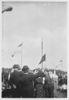 Foto: Kaderleden van de NJS. Zij brengen de NSB groet tijdens het hijsen van de vlag ( ? ).