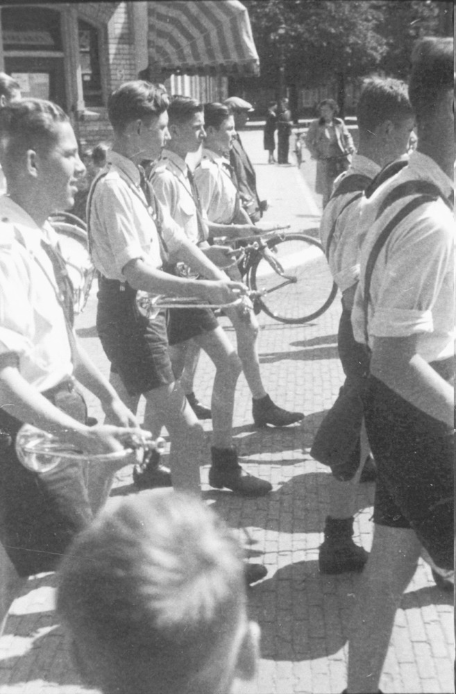 Foto: Parade van de Nationale Jeugdstorm, 'de Princevlag', een afdeling van de NJS, door de Amsterdamse Concertgebouwbuurt. Kruising Valeriusstraat-Cornelis Schuytstraat. Zie Beeldbank NA. De jongerenorganisatie van de NSB, de Nationale Jeugdstorm (NJS), werd op 1 mei 1934 opgericht. Het lidmaatschap was op basis van vrijwilligheid. 'Arische' jongens en meisjes tussen de 10 en 18 jaar konden toetreden. Hoewel de Jeugdstorm de schijn probeerde op te houden een niet-politieke groepering te zijn, waren de ideeën grotendeels gebaseerd op de NSB-ideologie. Tijdens de bezetting streefden de Duitsers ernaar de NJS op te laten gaan in de Hitler-Jugend. Maar Mussert en 'hoofdstormer' C. van Geelkerken slaagden erin het nationale karakter van de jeugdorganisatie te bewaren. Op haar hoogtepunt telde de Jeugdstorm 16.000 leden.