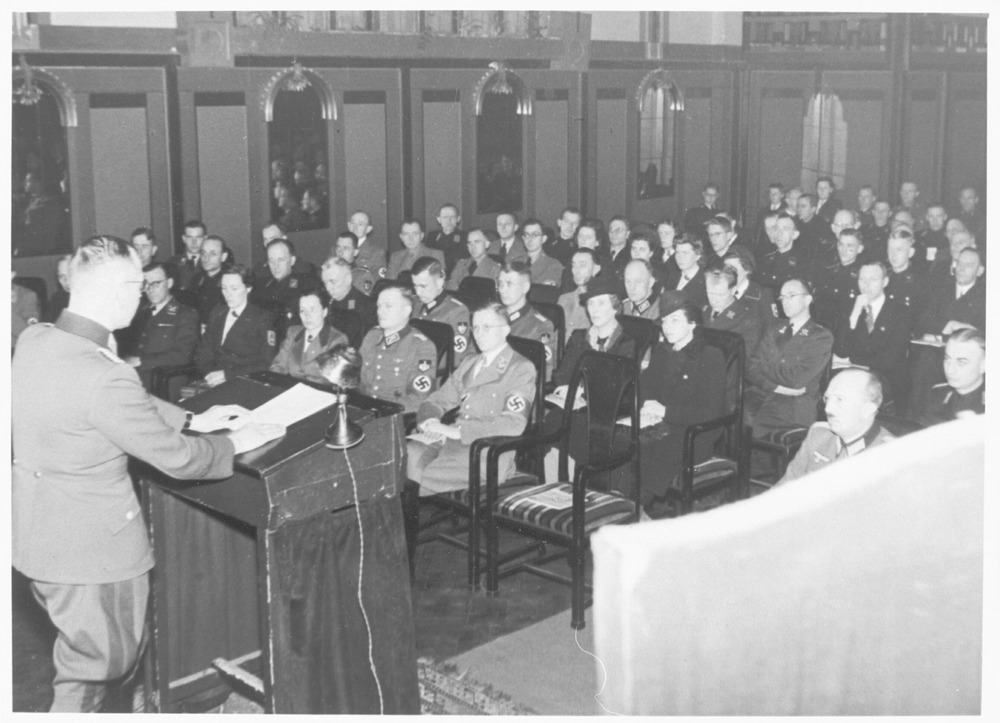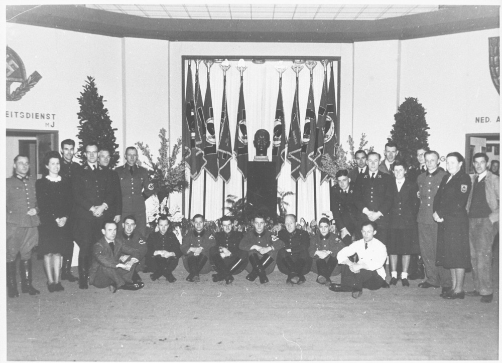 De gecombineerde NAD - RAD tentoonstelling in de Jaarbeurs te Utrecht. De Nederlandsche Arbeidsdienst (NAD) werd door de Duitse bezetter op 23 mei 1941 opgericht. De organisatie vertoonde sterke overeenkomsten met de Duitse Reichsarbeitsdienst en was een voortzetting van de Nederlandsche Opbouwdienst (NOD). Het bewerken van het land was één van de voornaamste werkzaamheden. Aanvankelijk nam de bezetter genoegen met vrijwilligers. Maar vanaf 1942 werden bepaalde categorieën jongeren verplicht opgeroepen. Al snel raakte de NAD steeds meer onder nationaal-socialistische invloed. Vast onderdeel was het onderricht in het nationaal-socialistische gedachtegoed en daarnaast had de opleiding een sterk militair karakter. Symbool van de NAD was de spade die werd gedragen als een geweer.
