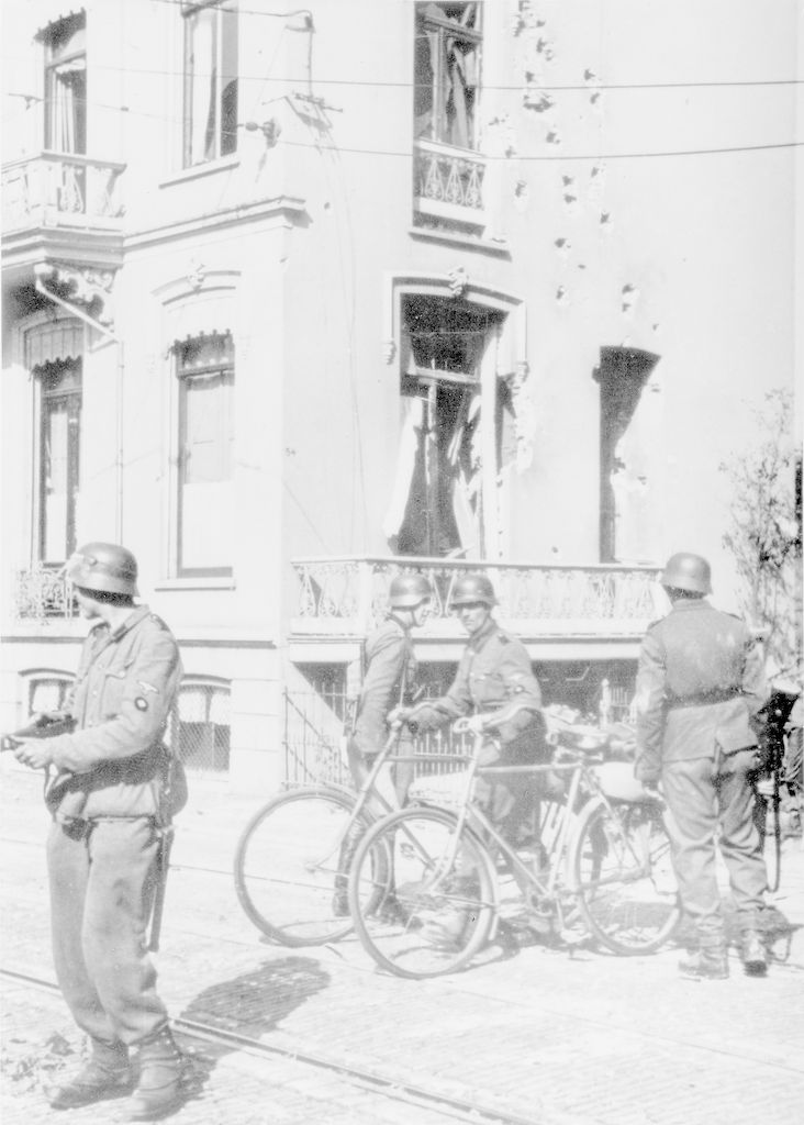 Stal variété Album met foto’s van diverse optredens in een varkensstal van een boer van Duits georiënteerde artiesten voor Duitse militairen aan het eind van de oorlog, vermoedelijk begin 1945. Het betrof verschillende groepen artiesten, muziek, dans, een clown. Een deel van de foto’s toont vrouwelijke artiesten in het gezelschap van Duitse militairen. Fietsen van de bezoekers van het varieté.