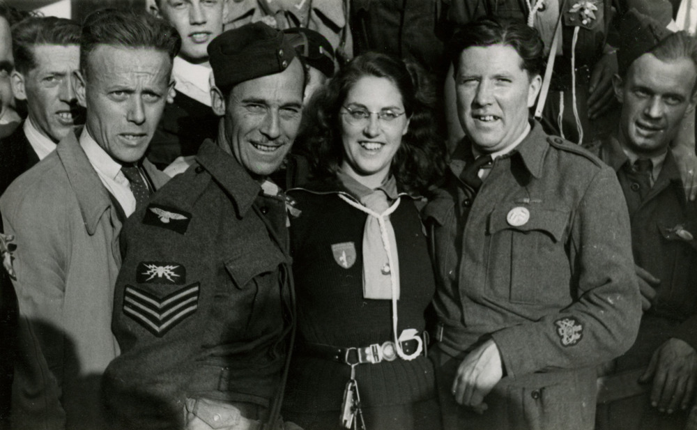 Afkomstig uit een serie ansichtkaarten van de ontmoeting met bevrijders van Gouda.