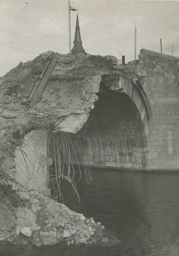Sint Servaasbrug. 13 september 1944 verwoest door de Duitsers om de geallieerde opmars te stuitten.