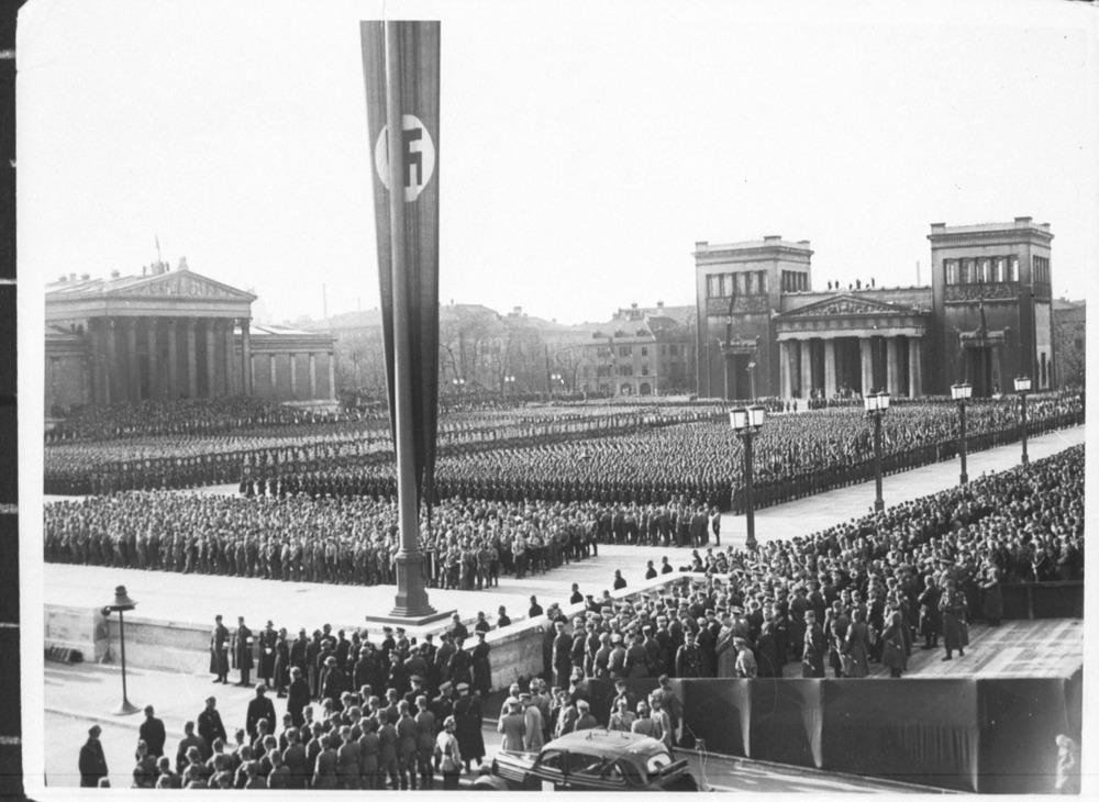 Der Führer sprach zum Abstimmungskampf in der Hauptstadt der Bewegung. Blick in die Ausstellungshalle während der Rede des Führers.