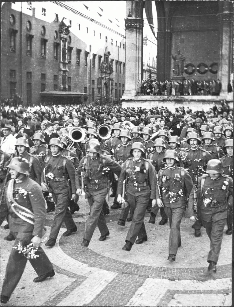 Begeisteter Empfang österreichischer Truppenabordnungen in München.
