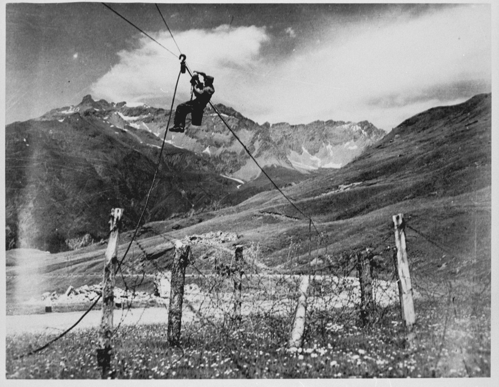 Still cold in the Alps. Two U.S. Fifth Army soldiers watch a comrade shovel snow in the Brenner pass, gateway between Austria and Italy. Allied bombing of this vital supply line contributed largely to the defeat of the enemy in Italy.