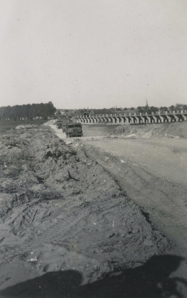 “ This souvenir album is intended as a pictorial record of the progress of the 16 Forward Trailer Section R.A.O.C. from the period of its mobilization in January 1944 until its arrival at Deventer in June 1945” First Canadian Army, British Liberation Army. 16 Forward Trailer Section, R.A.O.C. Foto’s zijn zowel van een professionele fotograaf als van amateurs. Het album is een cadeau van een Canadese kapitein aan Capt. J. M. Keyworth uit Londen. In het album wordt precies hun route beschreven, van Ostende naar Tilburg in december 1944. Vandaar in April naar Groesbeek, dan Enschede via de Siegfried Linie. Na de bevrijding werden de militairen ondergebracht in Deventer waar zij zeker tot Augustus bleven. Heel informatief album met interessante en grappige foto’s. Road to Arnhem