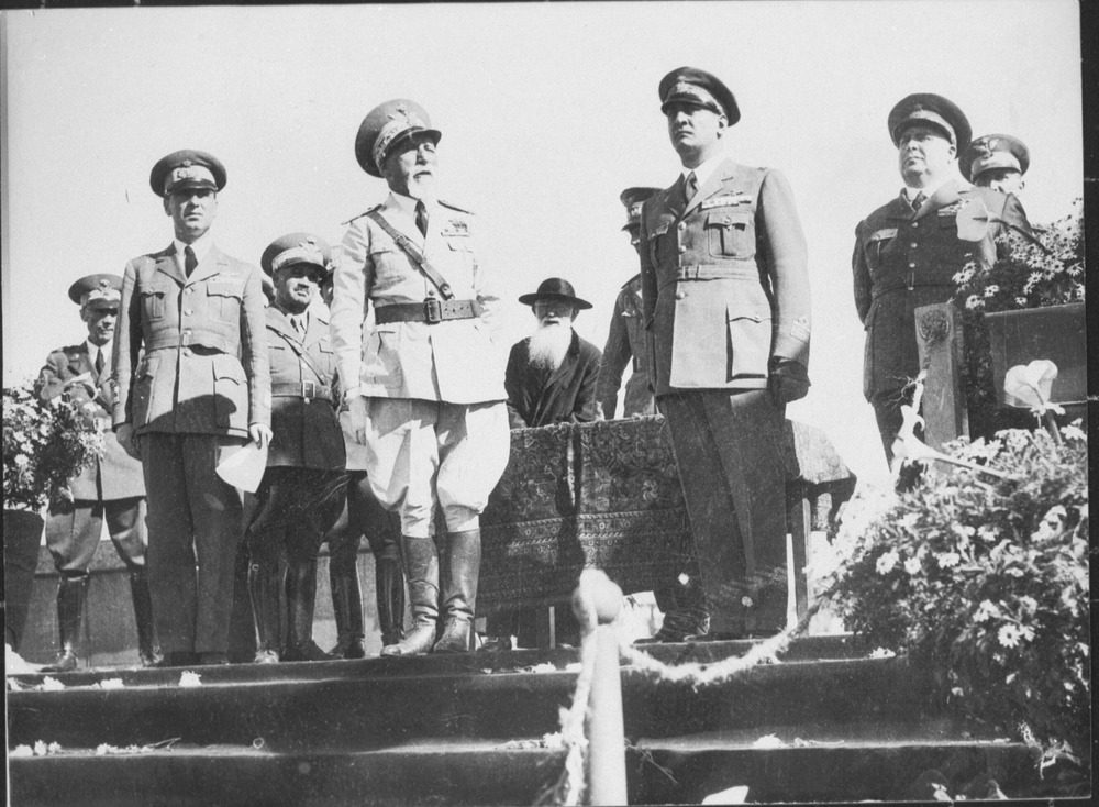 Marshal de Bono holds farewell review of young Eritrean Fascists. Marshal de Bono reviewing the Eritrea Leagion of Young Fascists at the Asmara aerodrome.