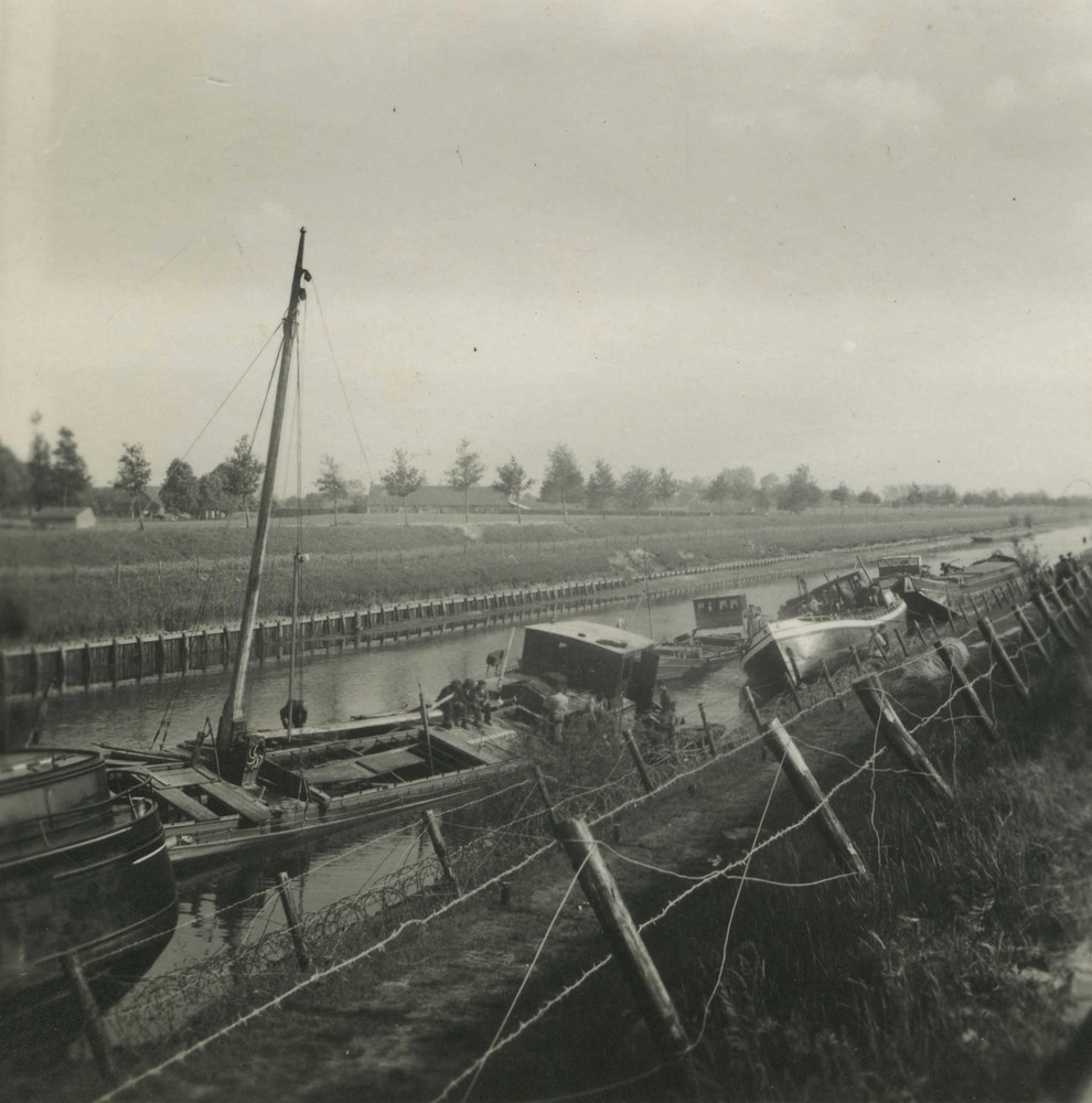 Nabij Brug 14 over de Zuid-Willemsvaart te Nederweert werden in mei 1940 schepen tot zinken gebracht door Nederlandse tr...
