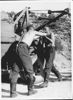 I-Staffel im Gebirge. Die Gebirgsjäger auf der Passstrasse befestigen das Zugseil an der Hebevorrichtung des I-Wagens.