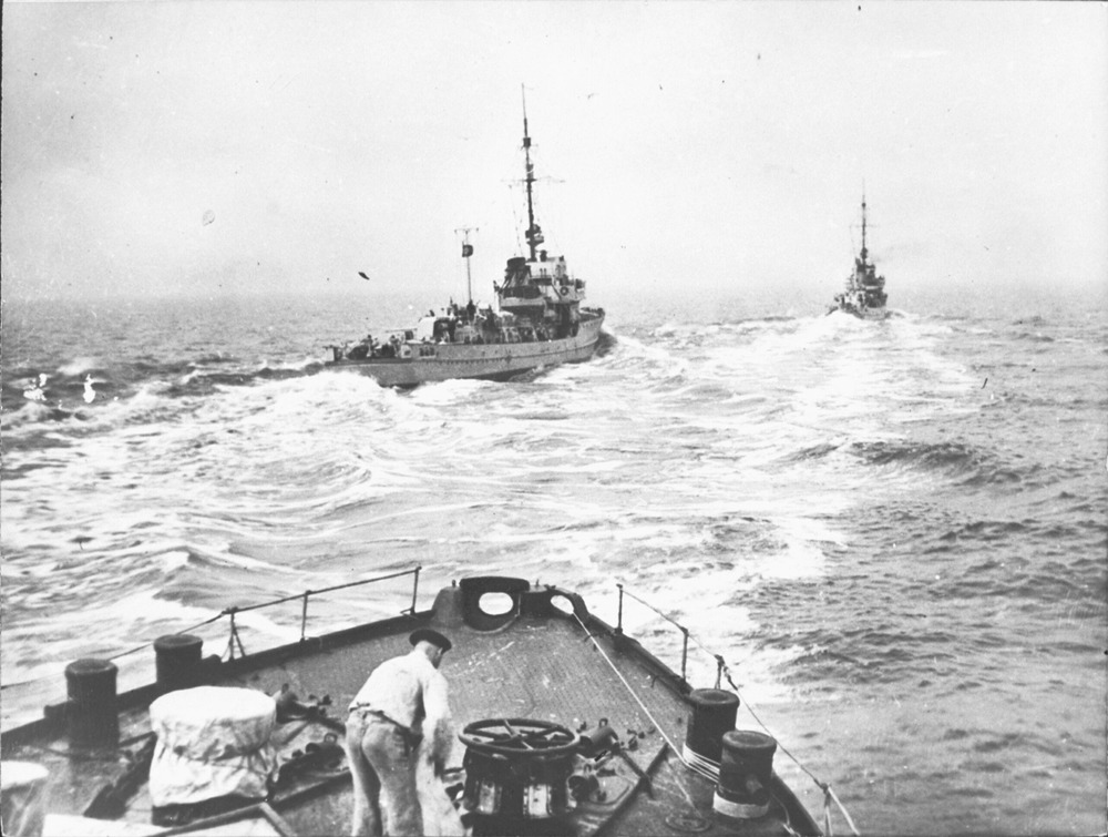 Mine sweepers are unknown heroes of seawarfare. A German mine sweeping flotilla running full steam ahead to their battlegrounds in the Northsea.