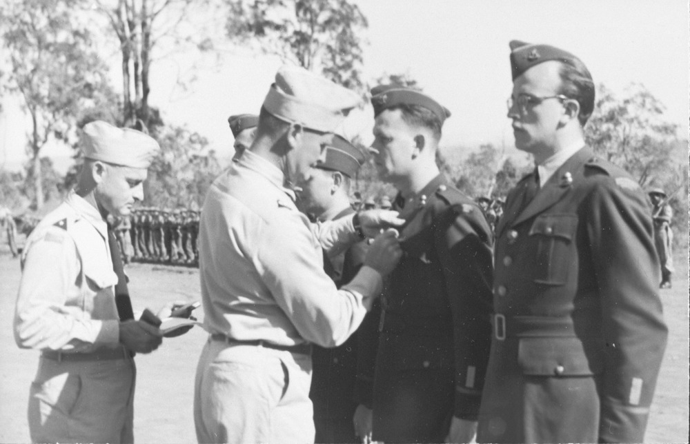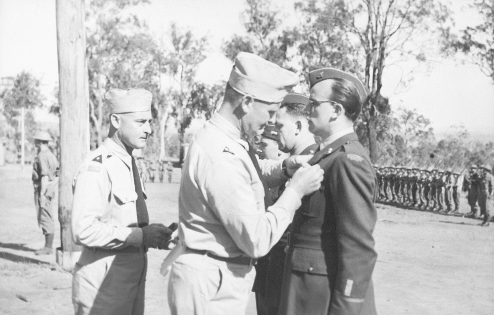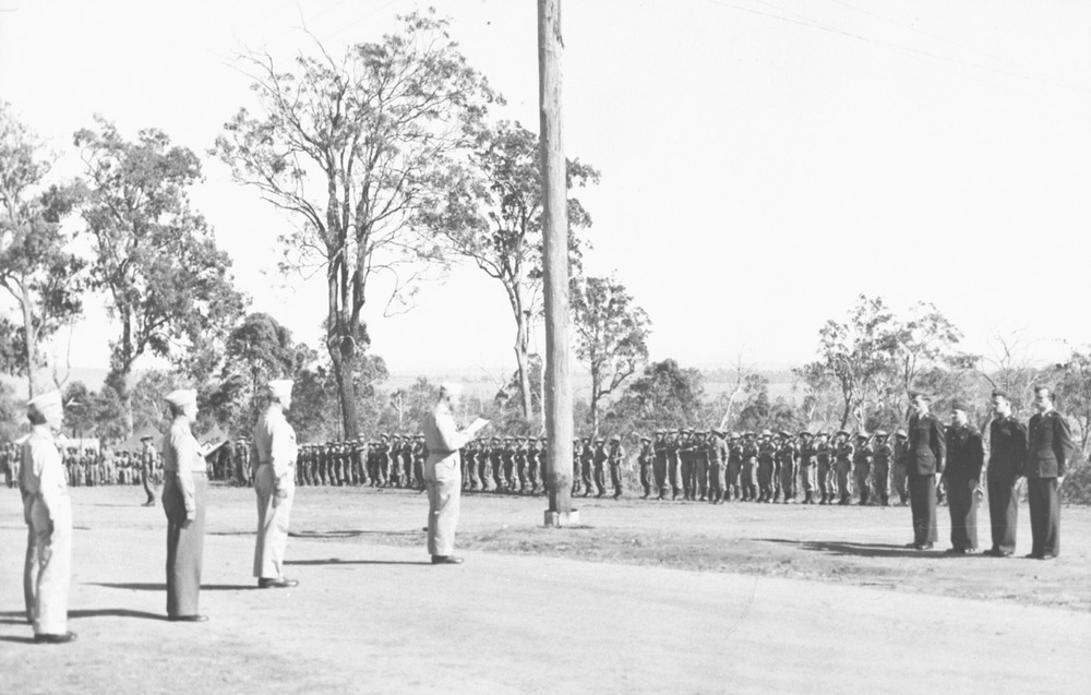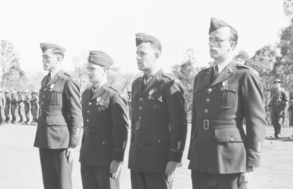 KNIL-troepen in Victory Camp, Casino, Australië, tijdens decoratie van 4 Ned. militairen. NI 4280