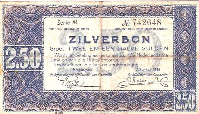 Betaalmiddel, zilverbon 2,5 Gulden, Serie M