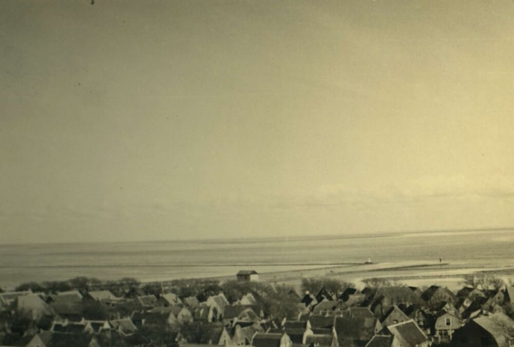Tijdens de bezetting werd er door de bezetter volop gefotografeerd. Deze opname is afkomstig uit het album van een Duitse militair, die tot de 'Funkzug 1 Flak Regiment 4' behoorde. Deze eenheid was in 1943 in Nederland gestationeerd. Zicht op de Waddenzee vanaf de Seinpaaldune te West-Terschelling. Op dit duin werd aan het begin van de bezetting de zg. Wassermanstellung aangelegd – op de foto niet zichtbaar - bestaande uit een grote betonbunker met een radarmast van ca. 36 m. hoogte, doorsnede ca. 2.50 m. met een raamwerk erop gemonteerd, type S (Schwer). Verder bestond de West-Batterie uit o.a. een mitrailleurstand van beton en enkele gemetselde bunkers – ingericht als woonbunker. Onderling waren deze bouwwerken verbonden door loopgraven van stapelzoden. De radarmast hield het geallieerde vliegverkeer richting Noord-Duitsland in de gaten en had een bereik van 300 km. Op de bijbehorende radarbunker staan tegenwoordig schotelantennes opgesteld ten behoeve van het centraal TV-antennesysteem van Terschelling.