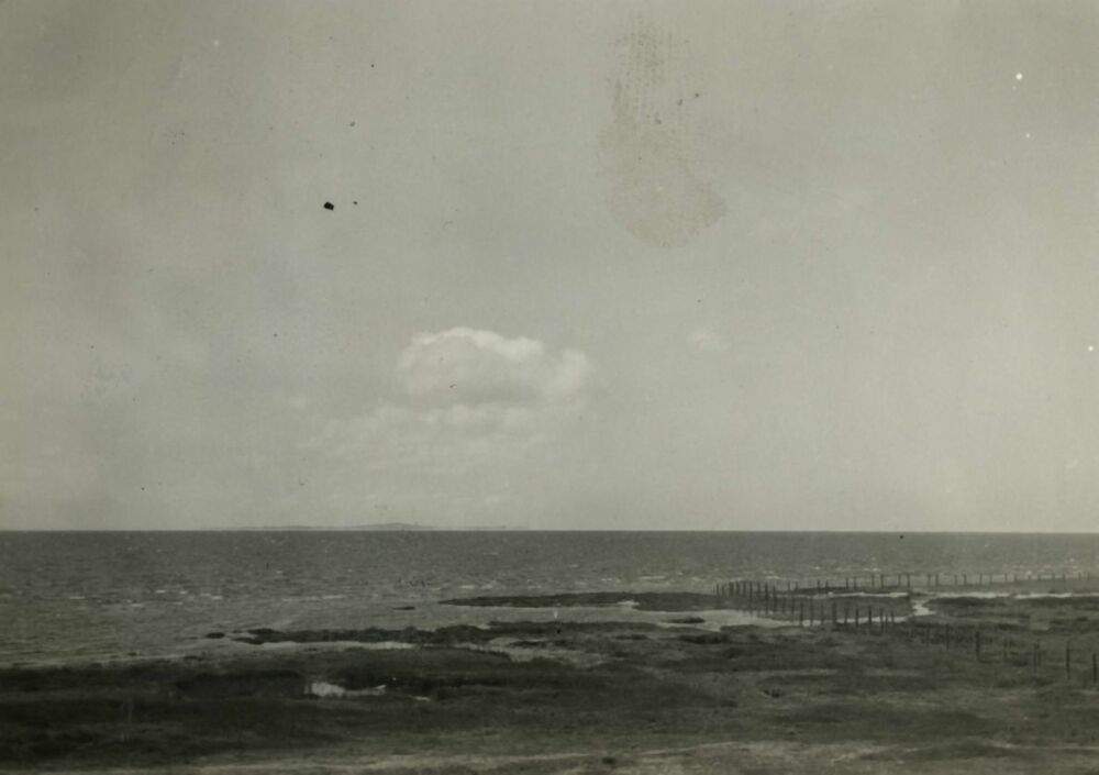 Tijdens de bezetting werd er door de bezetter volop gefotografeerd. Deze opname is afkomstig uit het album van een Duitse militair, die tot de 'Funkzug 1 Flak Regiment 4' behoorde. Deze eenheid was in 1943 in Nederland gestationeerd. Een bezoeker van de Beeldbank voegt hieraan toe: ''Het Groene Strand, aan de rand van West-Terschelling. In de verte zichtbaar het eiland Vlieland. Het Groene Strand is ontstaan rond 1885 toen de zandplaat De Noordsvaarder verzandde en vastgroeide aan het eiland Terschelling.''