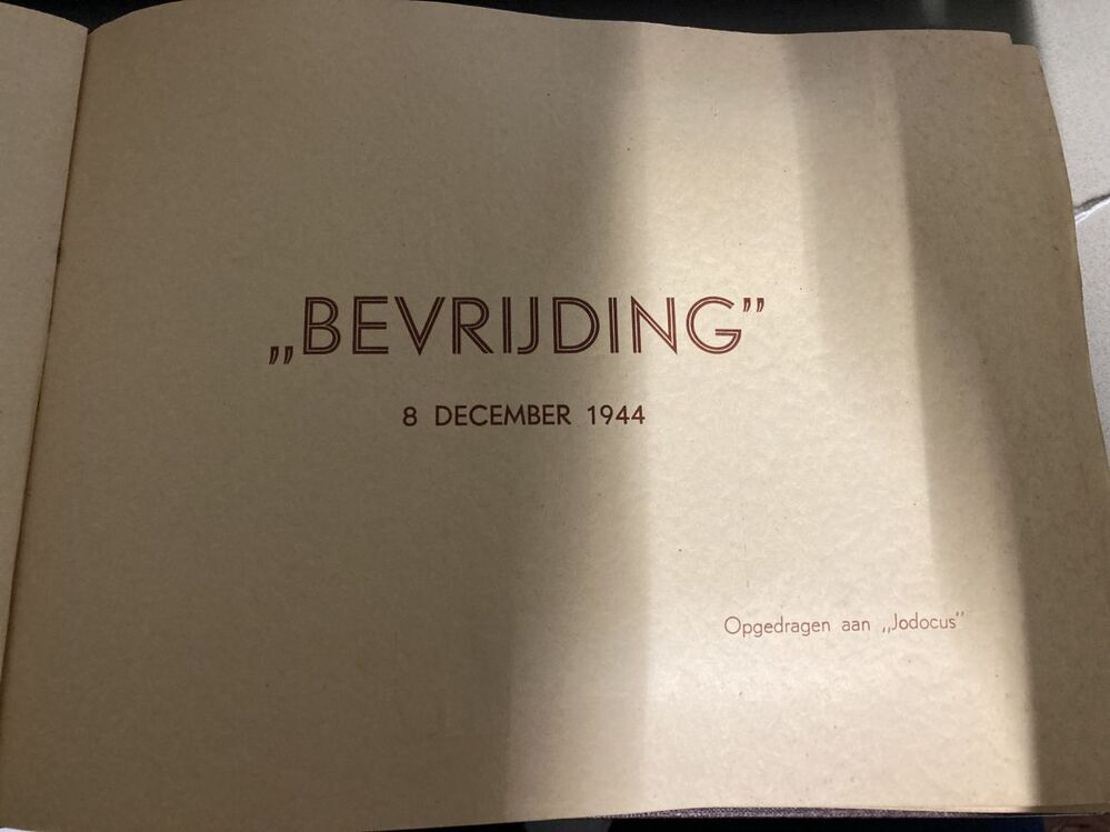 Foto/pagina in fotoalbum Bevrijding 8 december 1944. In bruine casette. 92 pagina's.
