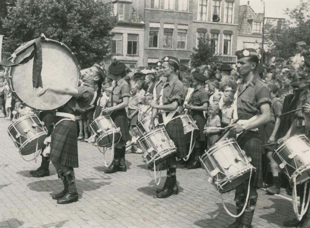 Op 13 mei 1945 was er een grote 'Churchparade' door de Friese hoofdstad ter gelegenheid van de dankdienst van Canadezen en verzet in de Grote Kerk. De parade werd afgenomen door de Canadese kolonel H.G. Sandercock samen met Nederlandse autoriteiten. De dienst stond onder leiding van legerpredikant Andrews en de hervormde ds. G. Gerbrandy. Het thema was: 'Hij is onze vrede'. Hier speelt de 'Pipe and Drumband' op het Wilhelminaplein.