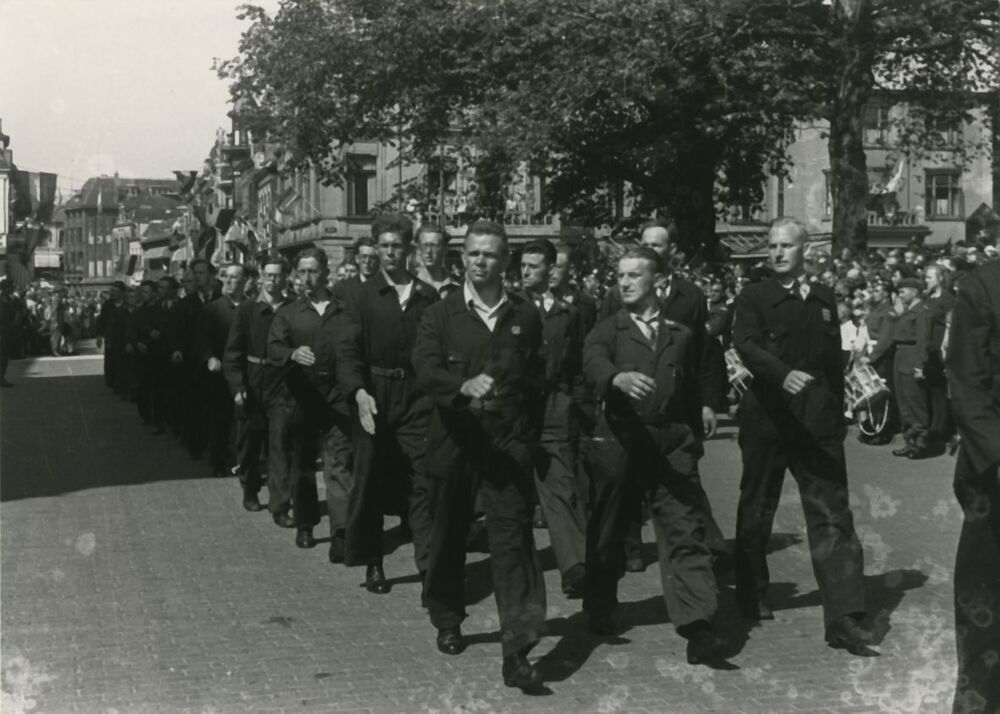 Op 13 mei 1945 was er een grote 'Churchparade' door de Friese hoofdstad ter gelegenheid van de dankdienst van Canadezen en verzet in de Grote Kerk. De parade werd afgenomen door de Canadese kolonel H.G. Sandercock samen met Nederlandse autoriteiten. De dienst stond onder leiding van legerpredikant Andrews en de hervormde ds. G. Gerbrandy. Het thema was: 'Hij is onze vrede'. Hier ziet passeert de N.B.S. de 'Beurs'.