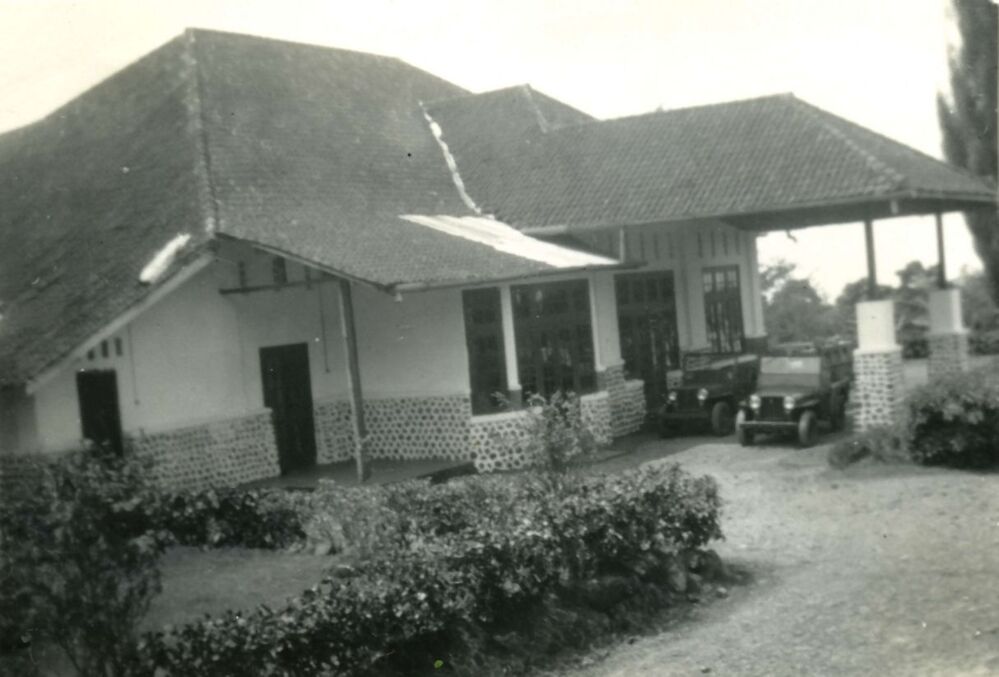 Direct na de Tweede Wereldoorlog werden er Nederlandse militairen ingezet tijdens de onafhankelijkheidsstrijd in het toenmalige Nederlands Indië. Hier ziet men een huis. Over de bewoner(s) is/zijn geen nadere gegevens bekend. Voor de deur staan twee jeeps geparkeerd.