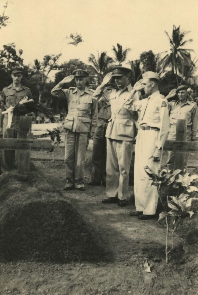 Direct na de Tweede Wereldoorlog werden er Nederlandse militairen ingezet tijdens de onafhankelijkheidsstrijd in het toenmalige Nederlands Indië. Hier wordt de laatste groet gebracht bij het graf van een gesneuvelde kameraad.
