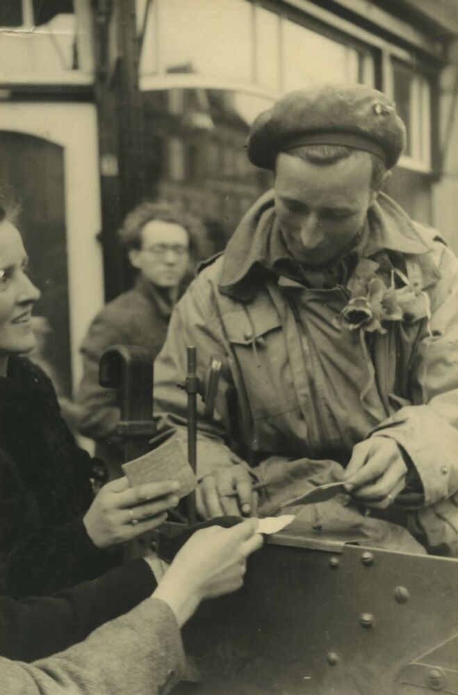 Op 15 april 1945 werd Leeuwarden door de Canadese Strijdkrachten bevrijd. Deze militair heeft het tijdens een korte pauze druk met het uitdelen van handtekeningen.
