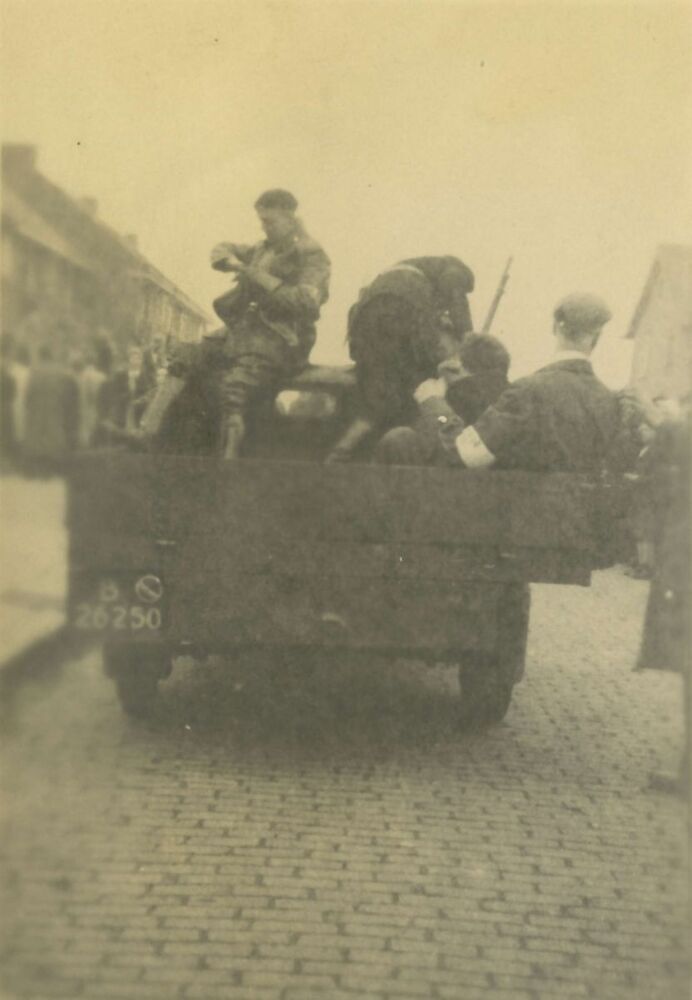 Op 15 april 1945 werd Leeuwarden door de Canadese Strijdkrachten bevrijd. Om even over twaalf uur rolden de gevechtswagens van de 'Royal Canadian Dragoons', zonder dat er een schot gelost werd, langs de Groningerstraatweg de stad binnen. Hier worden enkele N.S.B. 'ers uit de Pieter Langedijkstraat door leden van de B.S. afgevoerd.