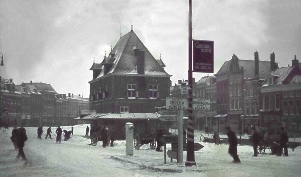 Foto, Hustinx Friesland, 19420120 Leeuwarden Waag en Wegwijzer