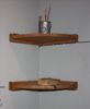 Twee ongeclassificeerde houten schijven, zilver geverfd, met een gat in het midden en een linnen band om de rand.