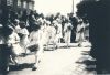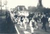 Milheeze. 100 jaar parochie Milheeze. Praalwagen met bruidjes met het schilderij van de eerste pastoor van Milheeze pastoor Scheutjens.