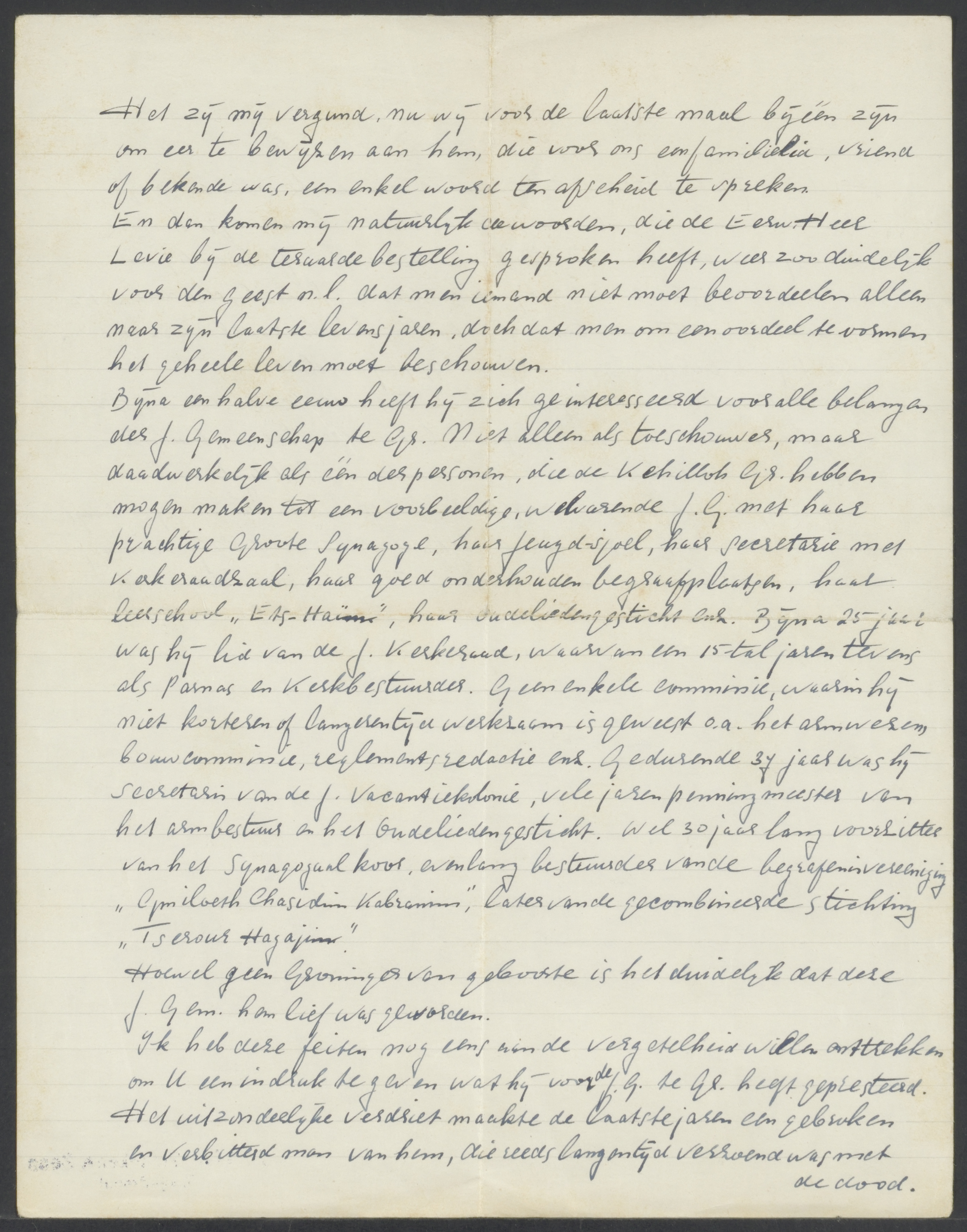 Toespraak in verband met het overlijden van J.H. Meijer in 1953 Teruggekeken wordt vooral gekeken naar zijn rol voor de Joodse gemeenschap van de stad Groningen.