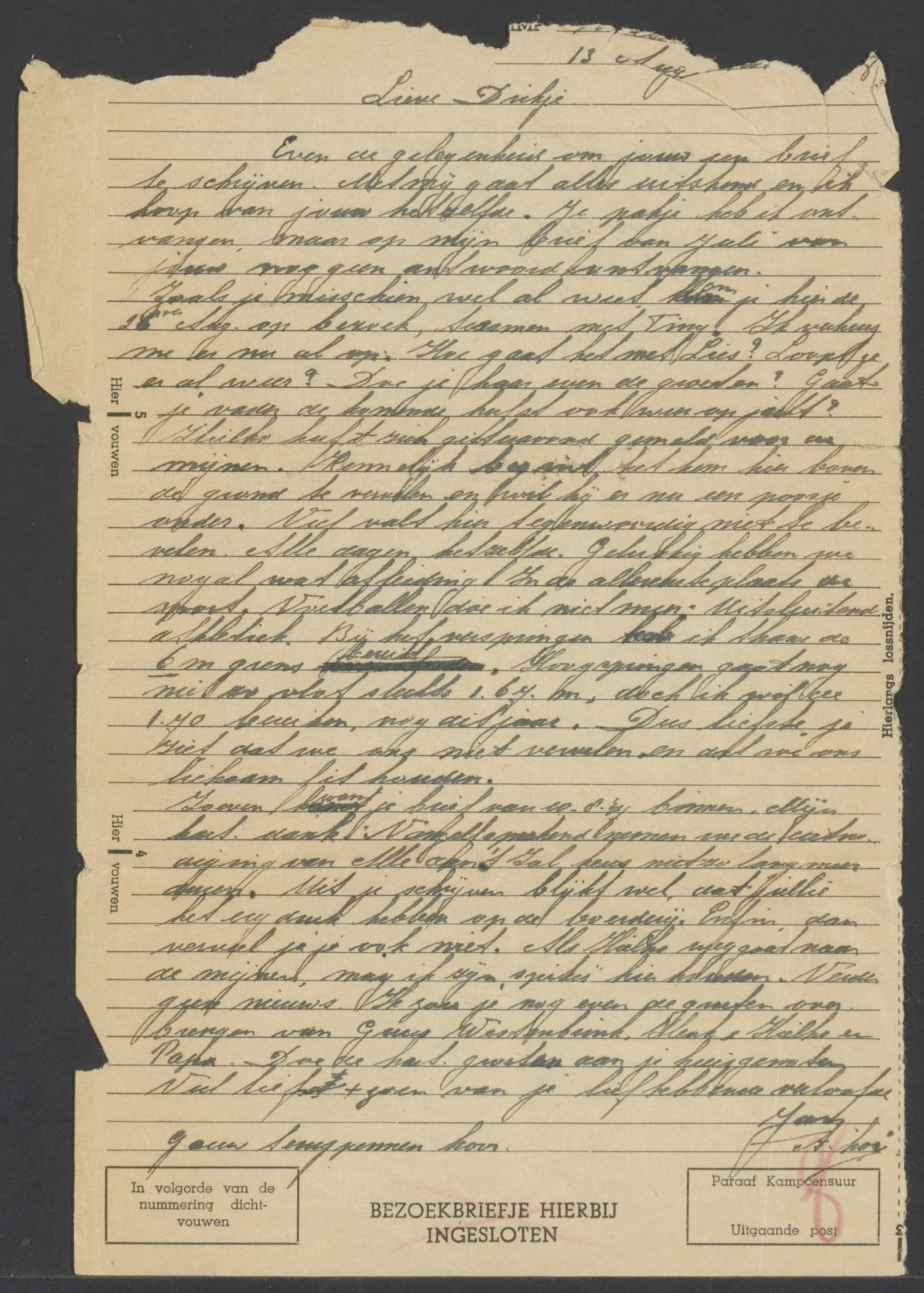 Brief van Jan Beijering aan Dirkje Drenth vanuit Interneringskamp Westerbork