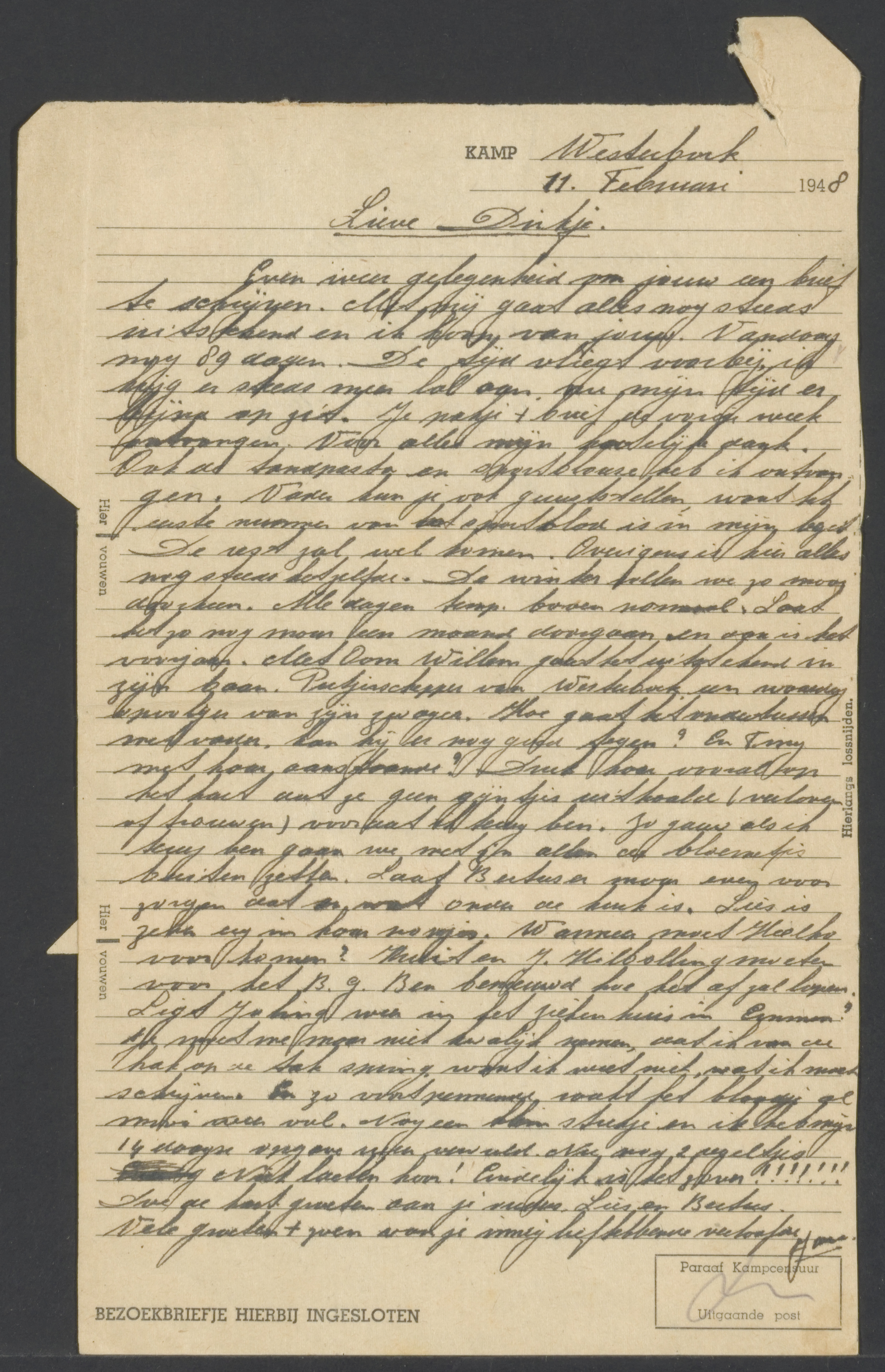 Brief van Jan Beijering aan Dirkje Drenth vanuit het Interneringskamp Harskamp