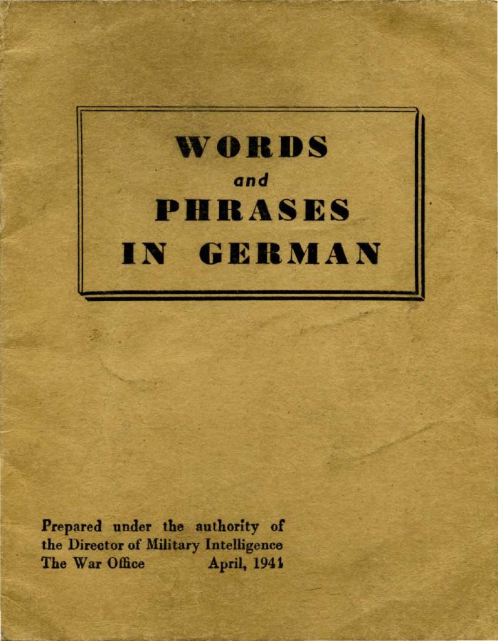 Item is a phrase book prepared by the Director of Military Intelligence of the British War Office for soldiers overseas.