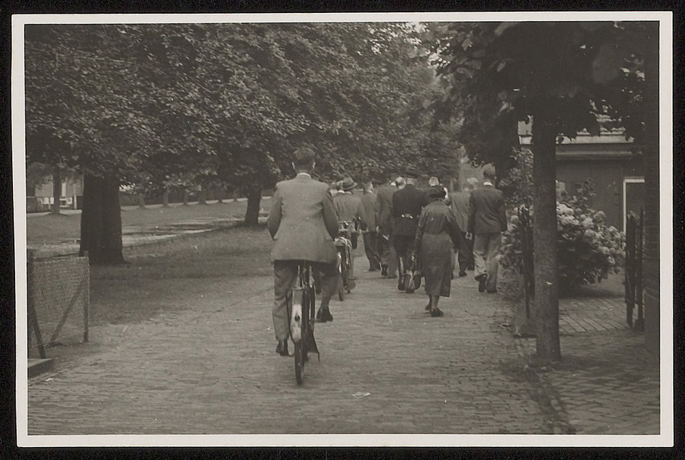Leden van het distributiecentrum gaan hier vanaf de Nieuwstad richting Zuiderwal. De man rechts naast die met het...